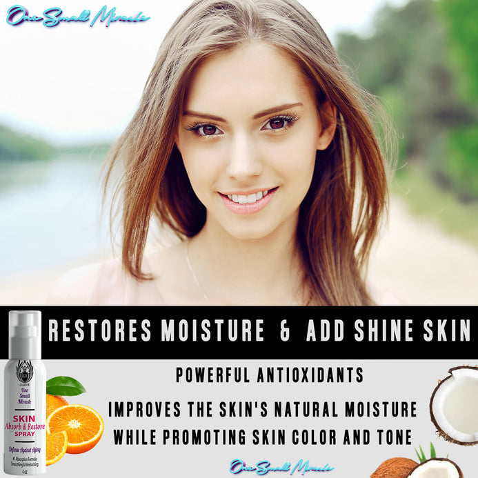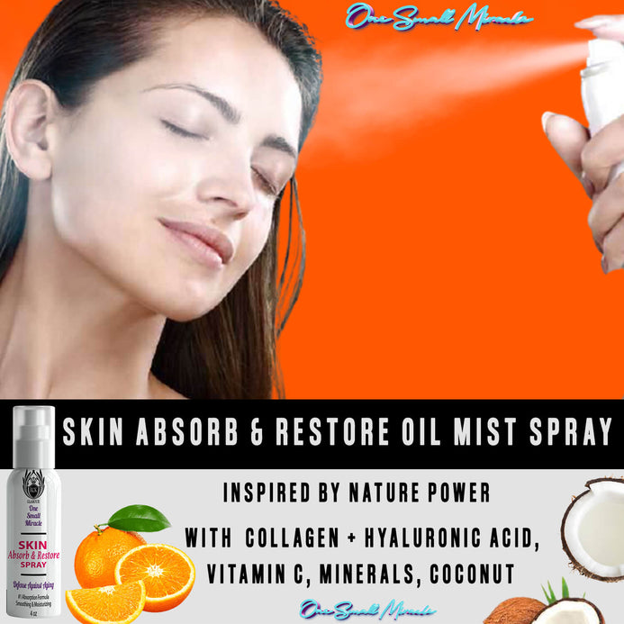 Skin Absorb & Restore Spray oil Mist. Inspired by Nature Power with Collagen + Hyaluronic acid, Vitamin C, Minerals for Restore moisture, add shine, softness, Rejuvenates, Revives dehydrated skin.